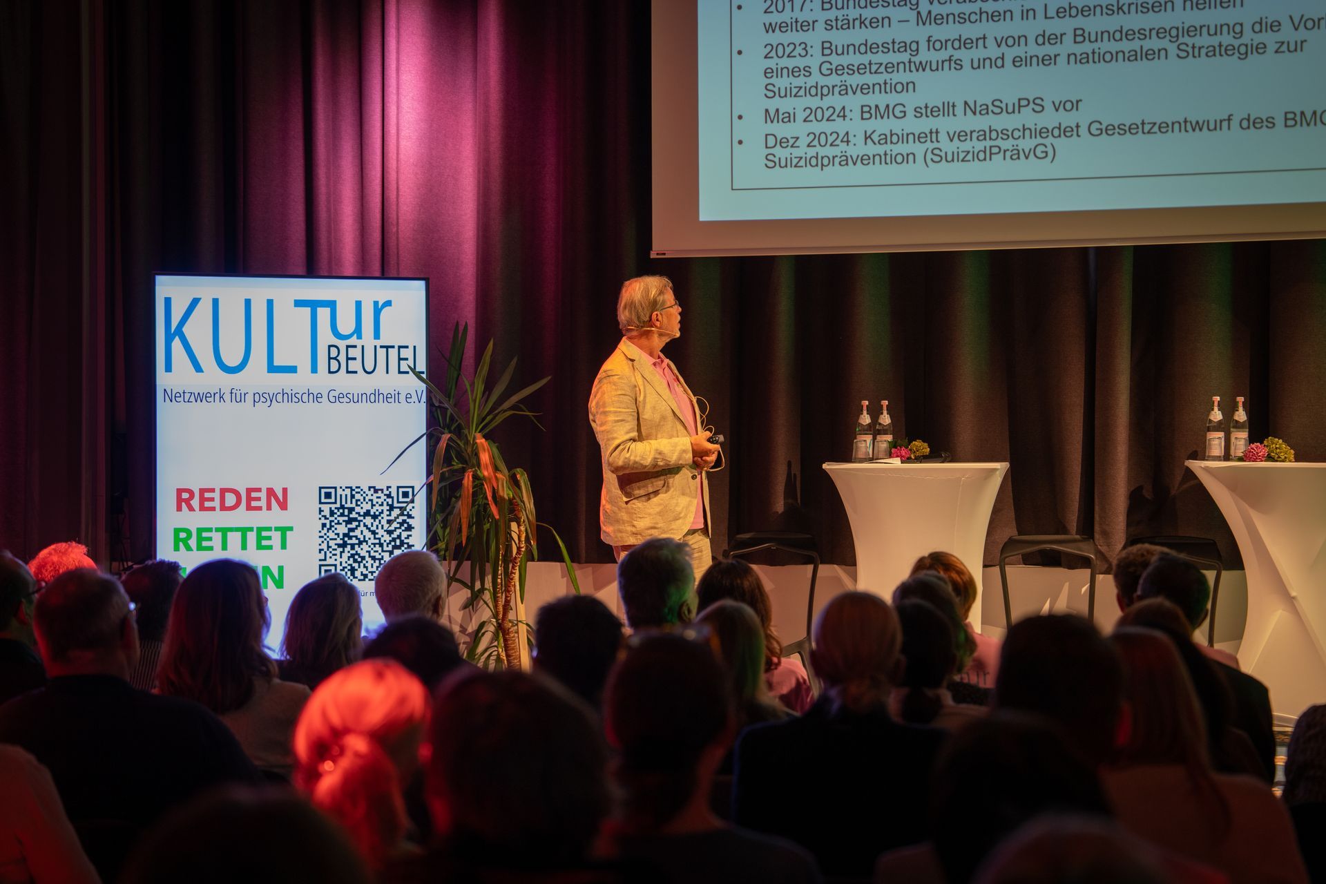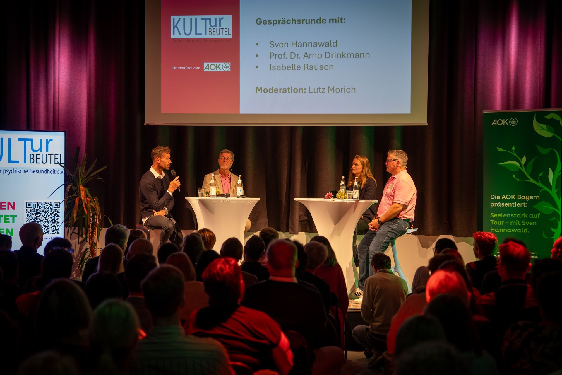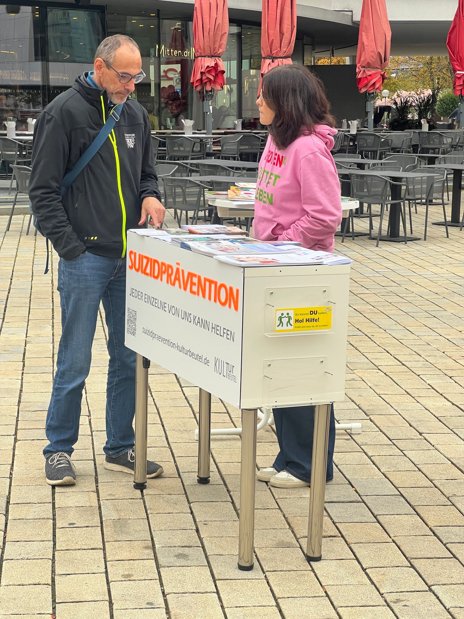 Am 10. September fand in Ingolstadt der Welttag der Suizidprävention statt. Am Vormittag stand unser Info-Bus auf dem Rathausplatz. Nicole Fichtner und Regine Morich begleiteten die Aktion mit einem Glücksrad, das spielerisch Fragen zum Thema stellte. Oberbürgermeister Dr. Michael Kern eröffnete den Tag offiziell im Bus. Veranstalter waren die Stadt Ingolstadt und der Krisendienst, unterstützt von vielen Hilfsorganisationen und dem Verein Kulturbeutel. Am Abend gab es einen Empfang für Sponsoren im Gründerzentrum brigk, bevor im Trafohaus die Hauptveranstaltung begann. Nachdem Wolfgang Nefzger begrüßt hatte, sprach Prof. Dr. Arno Drinkmann über den Stand der Suizidprävention. Isabelle Rausch (HSN) und Sven Hannawald (in Zusammenarbeit mit der AOK Ingolstadt) ergänzten das Programm mit persönlichen Beiträgen. Eine moderierte Gesprächsrunde (Moderator: Lutz Morich), offene Fragen und ein Austausch mit Sven Hannawald im Wasserturm rundeten den Tag ab. Die Botschaft war klar: Reden rettet Leben.