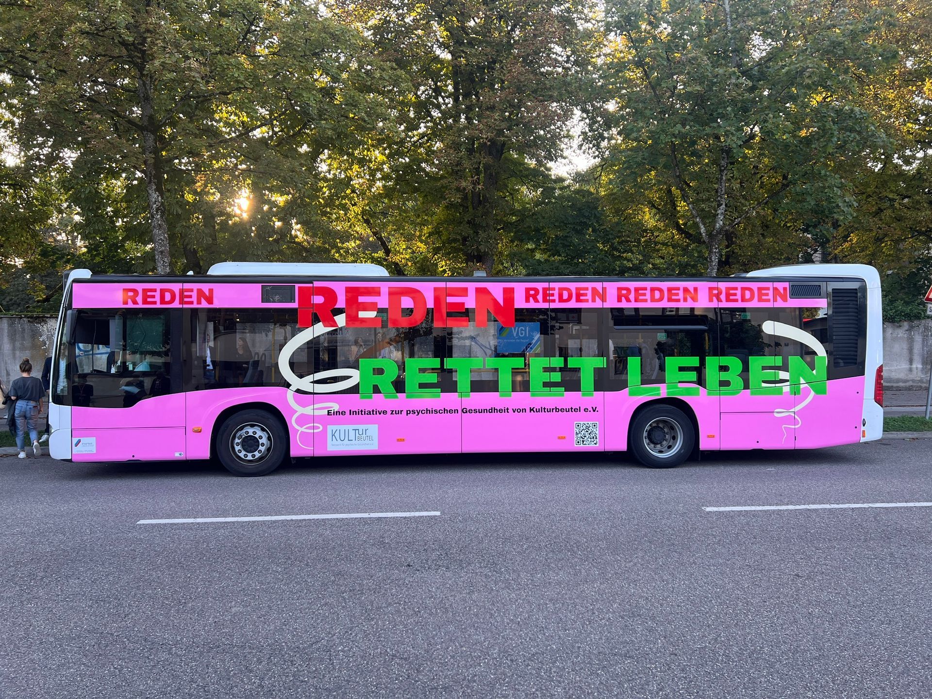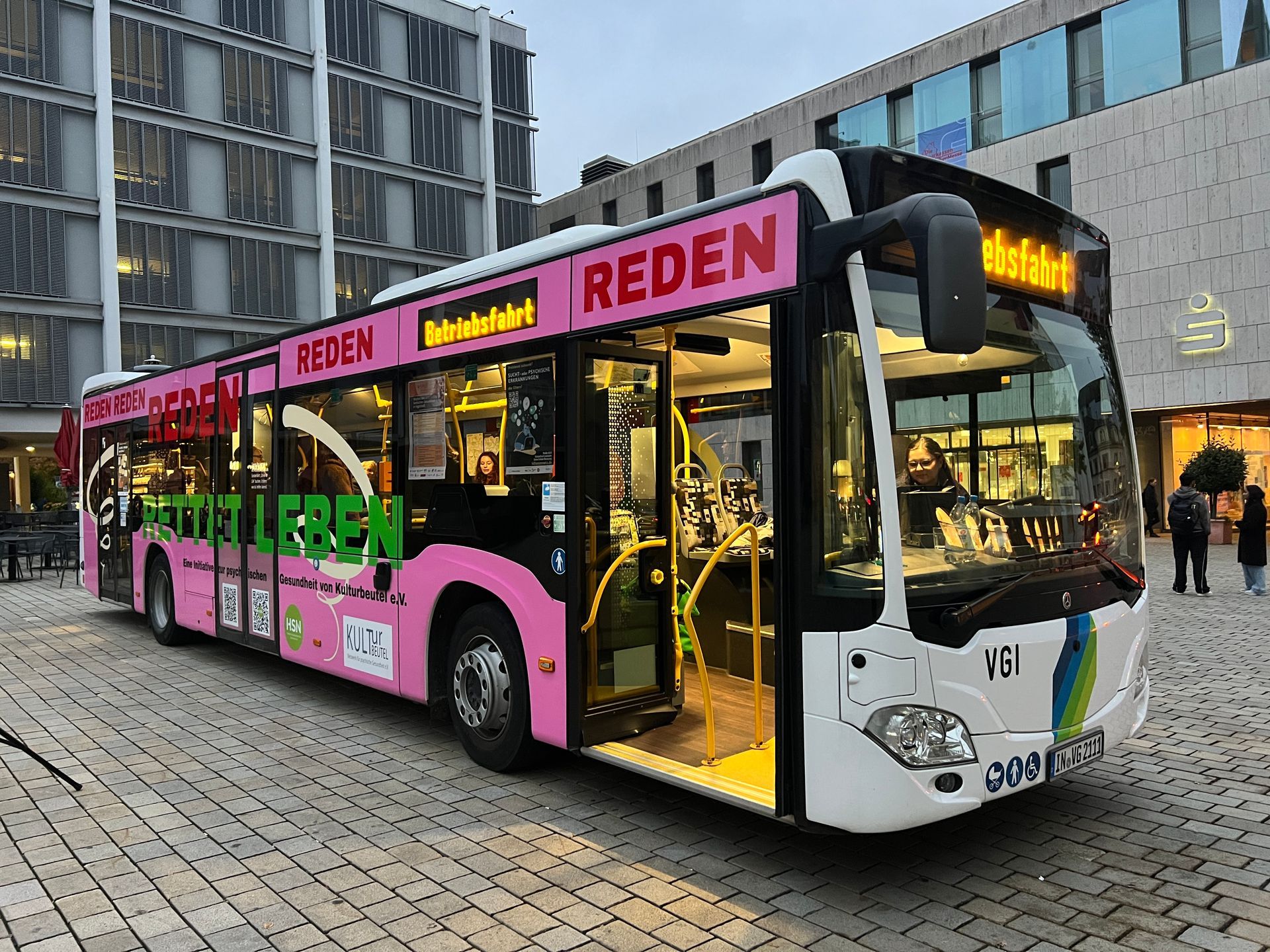 Ein auffällig beklebter Bus der VGI fährt im Linienverkehr durch Ingolstadt und Umgebung und macht auf das Thema psychische Gesundheit über 28 Monate aufmerksam und weckt Neugierde auf die zweite und dritte Aktion. Zusätzlich verweisen QR-Codes auf unsere Homepage. Das Thema wird in der Region verbreitet und bleibt präsent.
